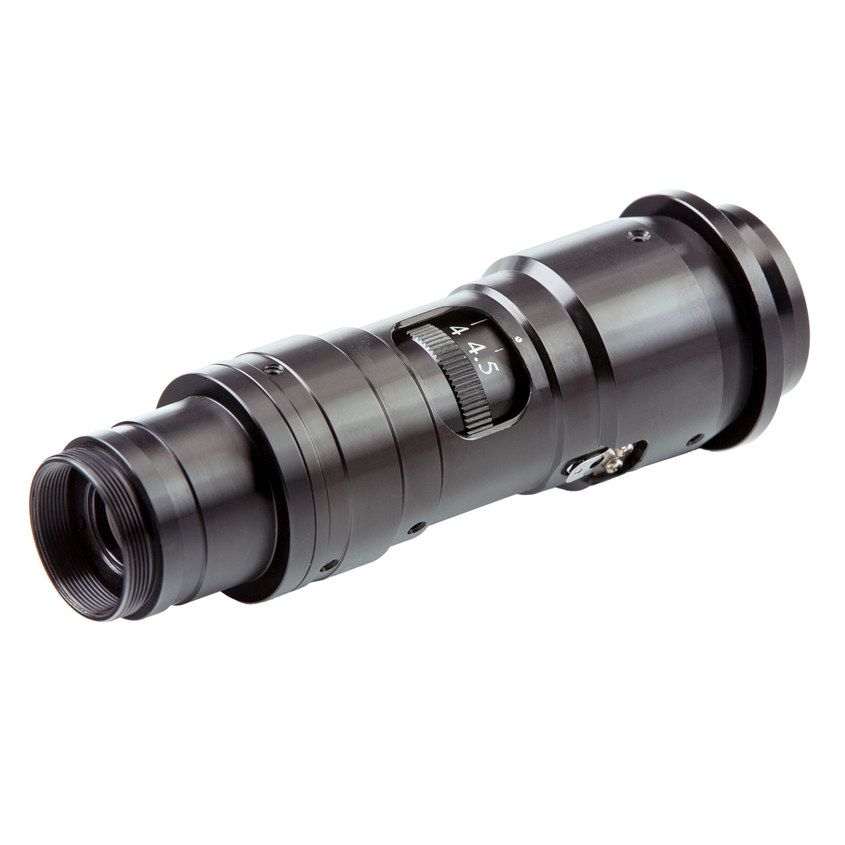 El sistema de zoom de 6,5 aumentos tiene seis topes de clic y debe combinarse con un adaptador y, si es necesario, con un objetivo de fijación. Hay disponibles tres adaptadores con rosca ajustable de montura C y cinco objetivos de fijación. Para la selección precisa de los componentes del adaptador y de la lente de fijación, ofrecemos una matriz para descargar a continuación.